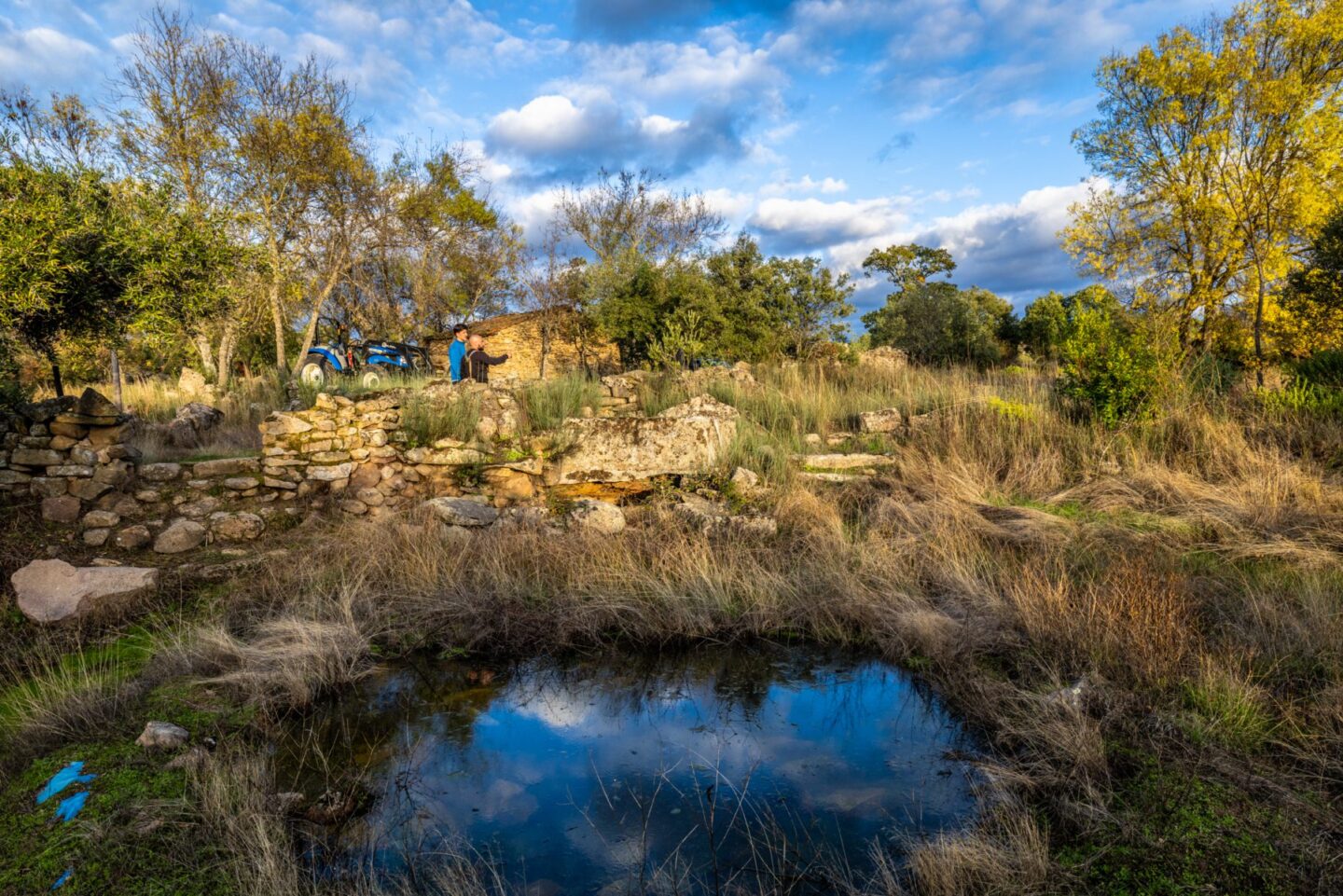 Het lokale team heeft verschillende poelen aangelegd in het projectgebied. Tijdens ons bezoek zaten deze vol met water. De poelen vormen een belangrijke watervoorraad voor droge periodes en zijn een bron van biodiversiteit: er komen allerlei dieren op af, zoals libellen en amfibieën.