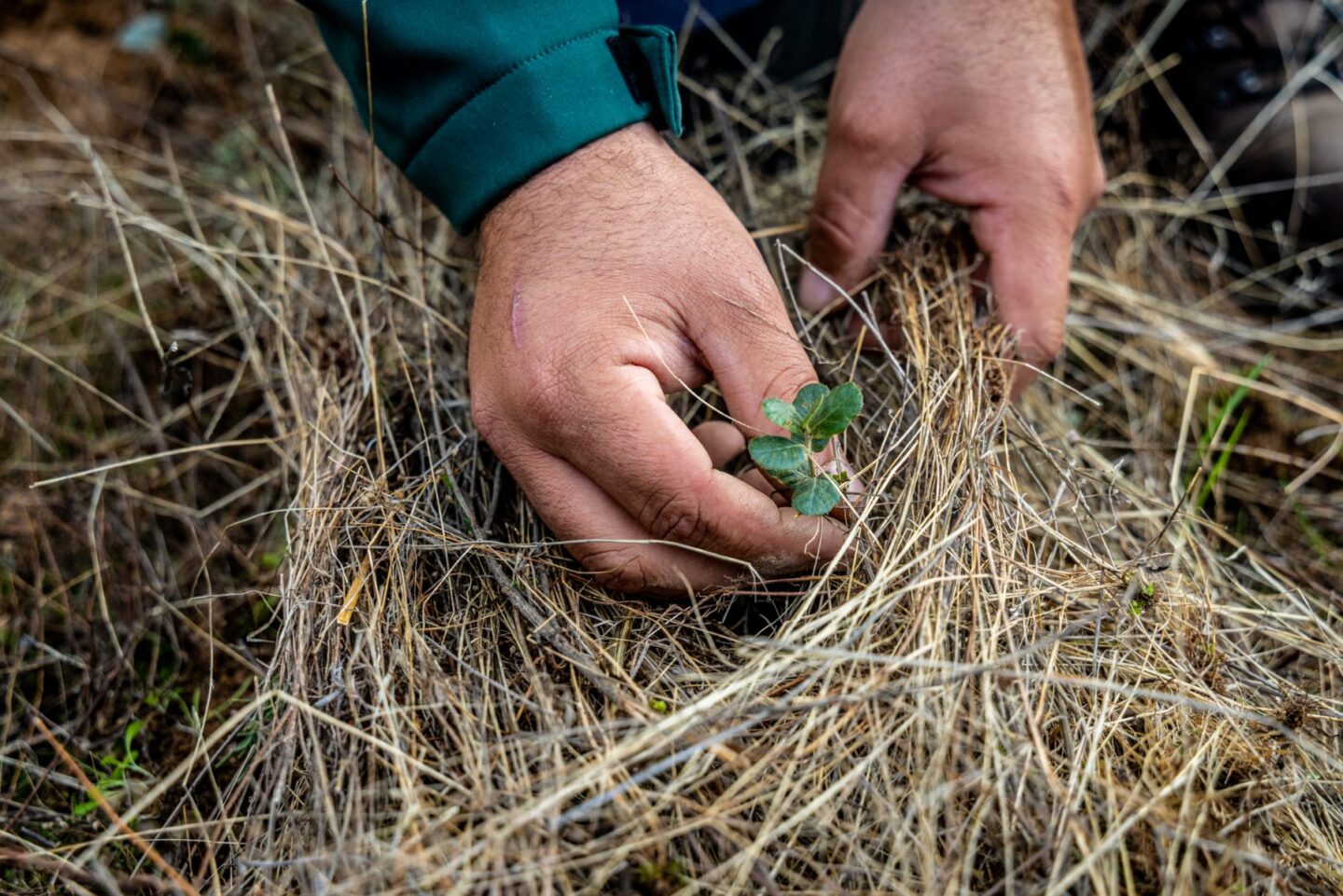 Op lastig bereikbare plekken, zoals tussen rotsen, worden eikels gepoot. Bijkomend voordeel hiervan is dat de kans kleiner is dat wilde zwijnen in de regio de eikels opeten. Dat heeft effect: een deel van de eikels is inmiddels uitgegroeid tot jonge eikjes, wat uiteindelijk moet bijdragen aan de natuurlijke verjonging van het bos.