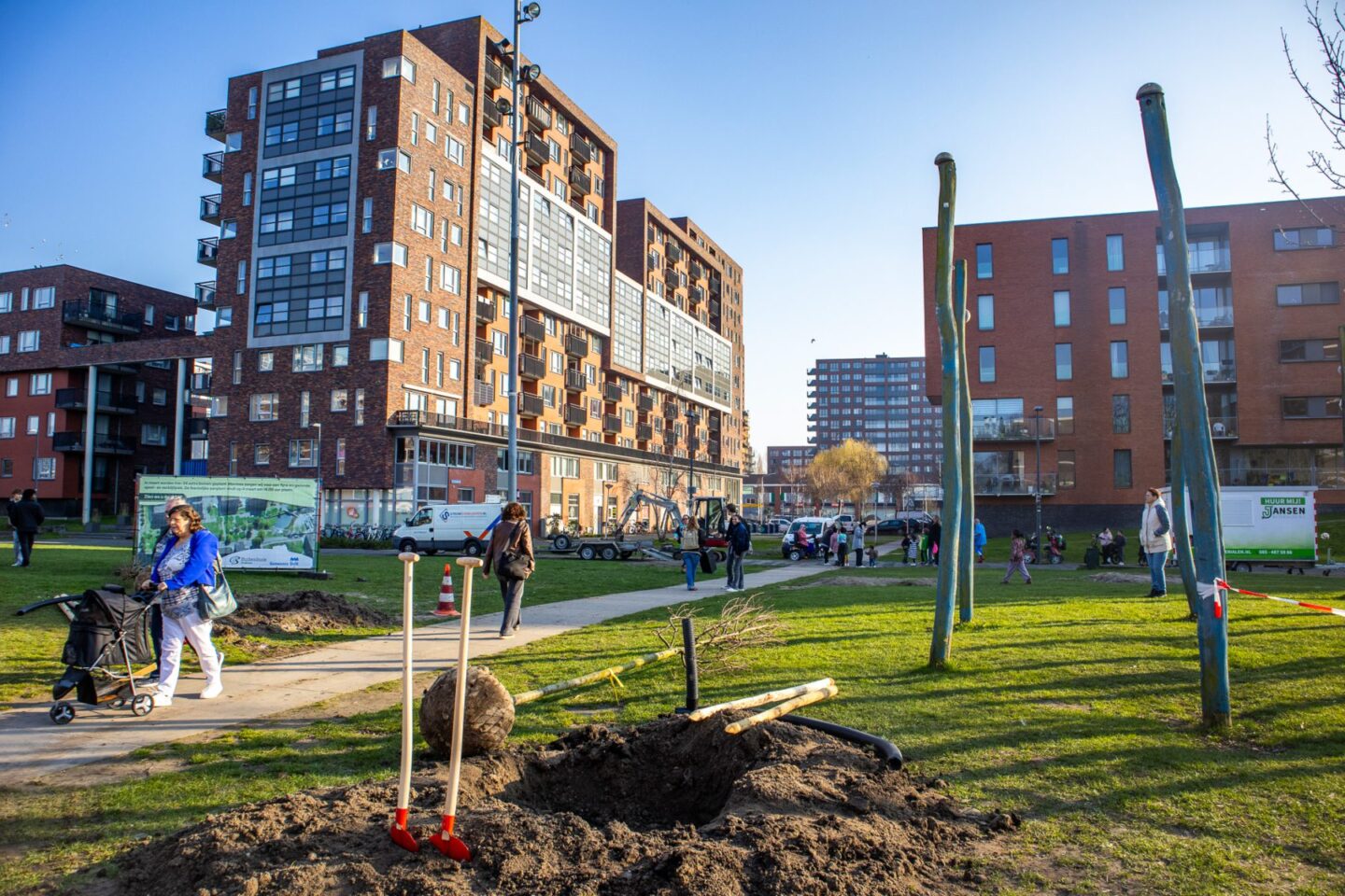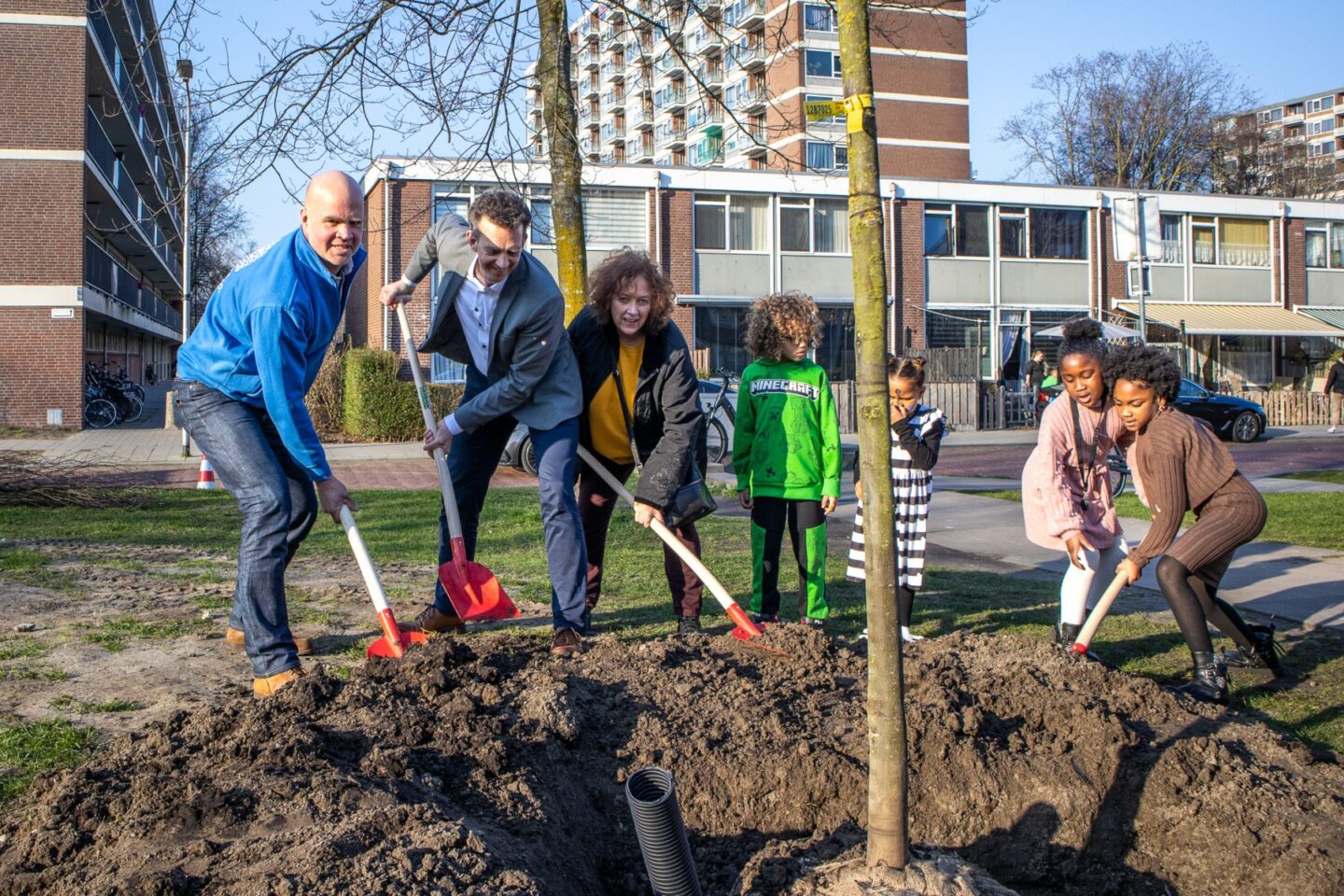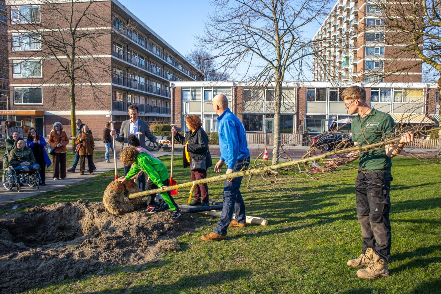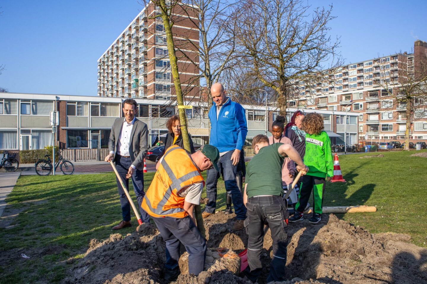 Ondertussen werd het tijd om de bomen in de grond te zetten. Samen met de gemeente Delft planten we: