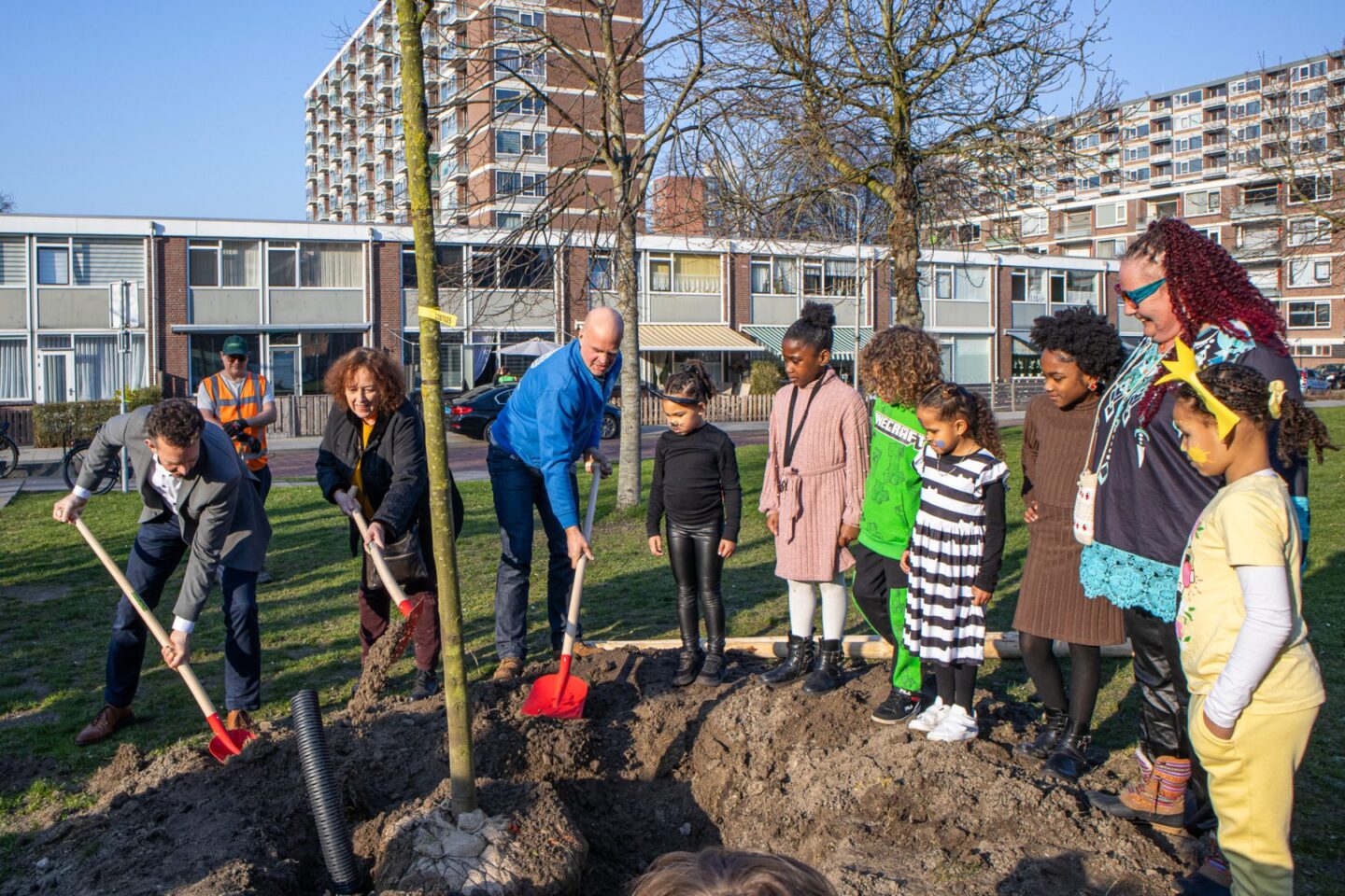 Op woensdag 4 maart klonk hiervoor startsein. Samen met de gemeente Delft en de Belangenvereniging Binnenstad Delft hebben we toen de eerste bomen in het Poptapark geplant!