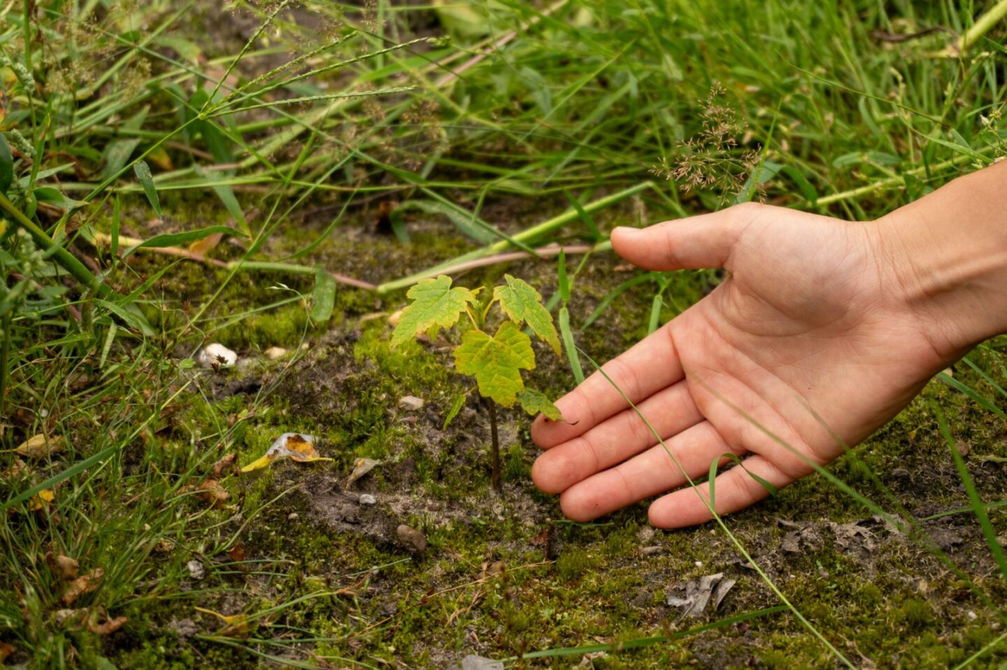 Tussen de kloempen wordt er bewust ruimte open gelaten, zodat er plek is voor natuurlijke verjonging. Dit is het proces waarbij zaailingen of scheuten spontaan opkomen uit zaden, noten of wortels van boomsoorten uit de omgeving. Deze aanplantmethode zorgt voor meer variatie in het bos en verschillende structuren van hoge en lage planten. We laten de natuur dus zoveel mogelijk haar gang gaan, waardoor het bos zich op een natuurlijke manier kan ontwikkelen en steeds dichter groeit.