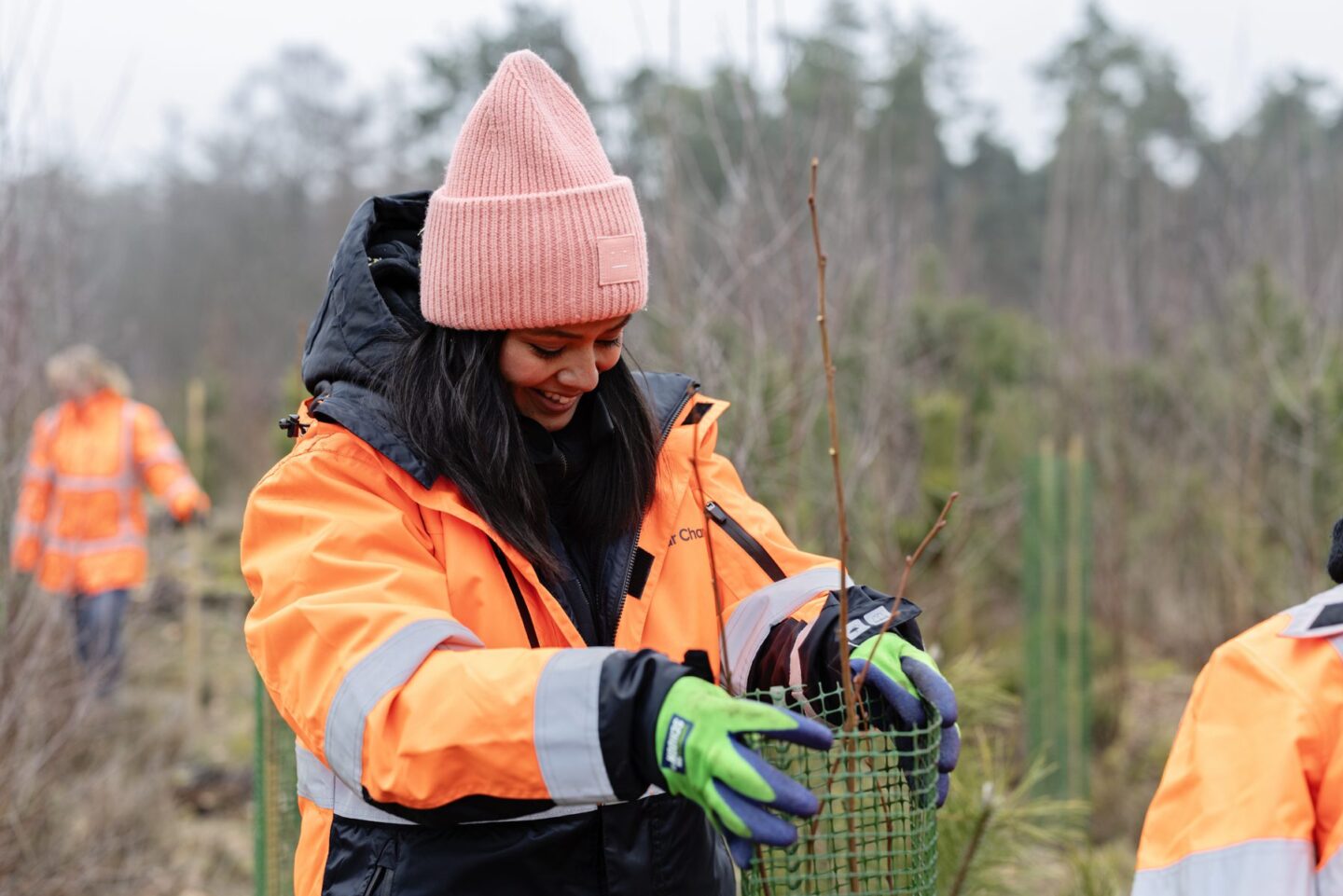 Our business partners also helped out during a planting day at the Lemelerberg. Together, they planted hundreds of small-leaved lime trees. This deciduous tree flowers profusely, attracts many insects and, with its rapidly decomposing leaves, ensures fertile soil. This provides birds such as the pied flycatcher, chiffchaff and willow warbler with more food and makes the forest stronger and more resilient, step by step.