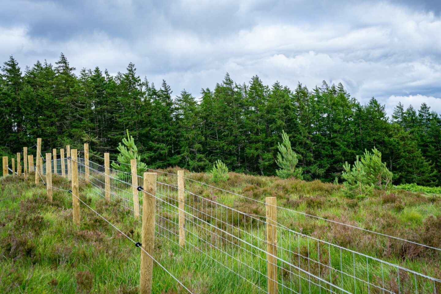 To keep the animals out, the RSPB has repaired several fences in the project area. The existing fenced-off enclosures were largely destroyed by the fire, so the trees that survived were eaten by the roe deer anyway. The RSPB has also erected extra fencing around adjacent areas of forest, so that seeds from these forests can spread and germinate unhindered throughout the area.