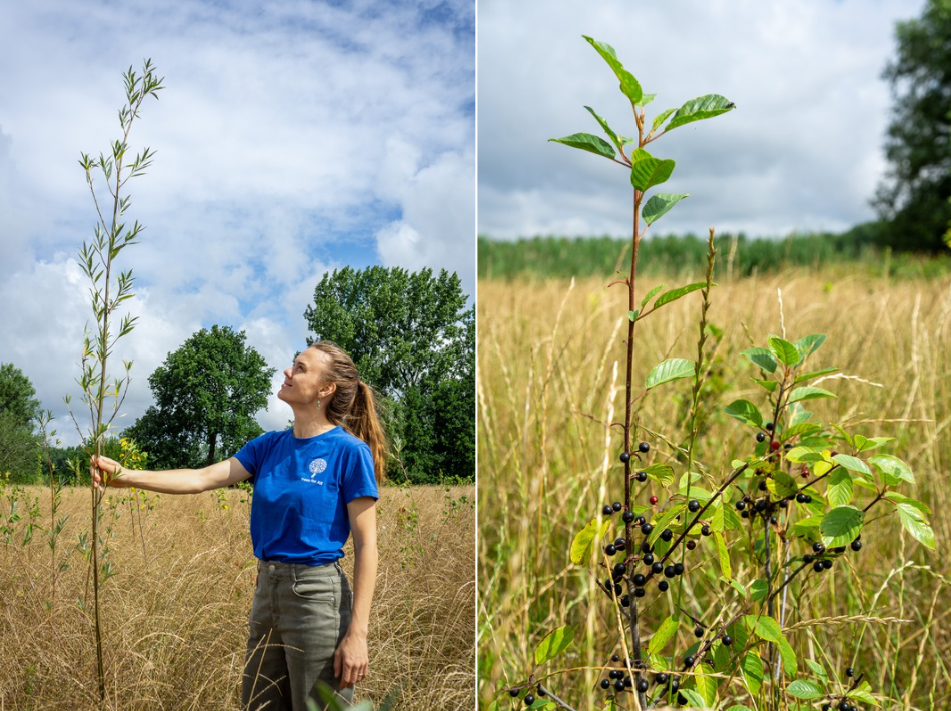 Ook de andere bomen ontwikkelen zich uitstekend. Naast de fladderiep zijn ook zwarte populieren al bijna een halve meter gegroeid. De wilgen gaan als een speer, die zijn soms wel 1,5 meter gegroeid! En aan de vuilboom (sporkehout) groeien de eerste bessen die door vogels worden gegeten.