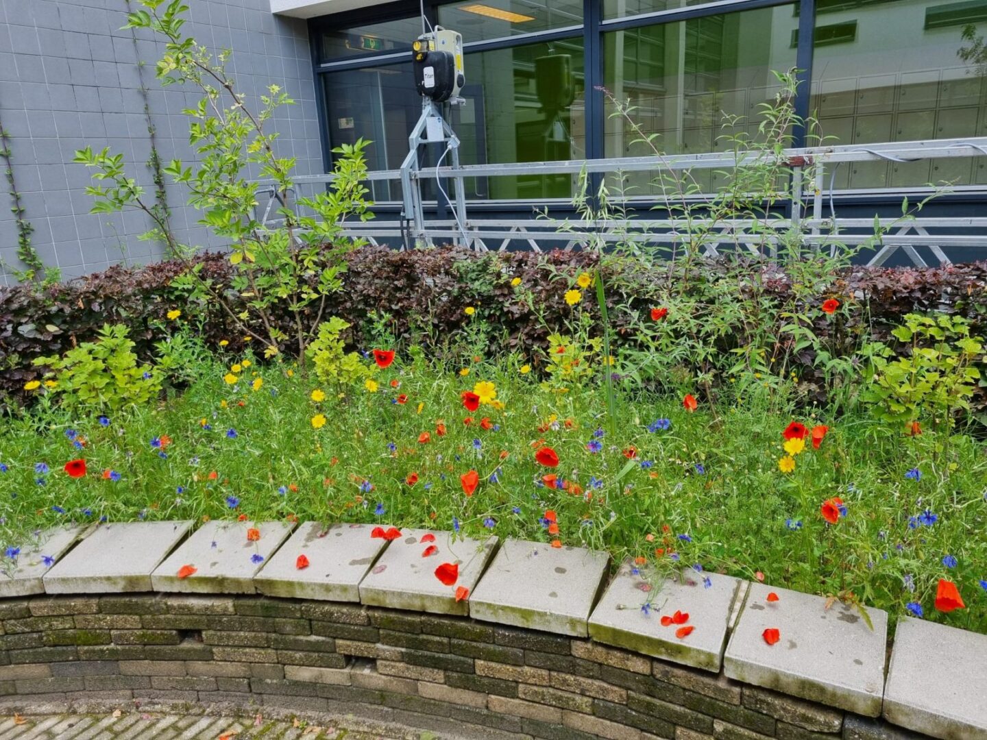 De patio moest een fijne buitenruimte worden, waar studenten konden relaxen. Ook was het belangrijk dat het groen zou bijdragen aan meer biodiversiteit en het tegengaan van hittestress. Inheemse bomen, struiken en planten moesten het dus worden.
