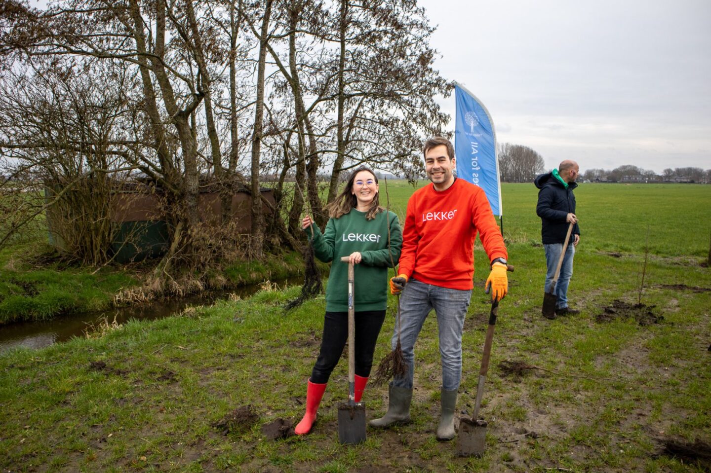 Een van de locaties waar we hebben geplant, is in Bunschoten-Spakenburg. Daarbij kregen de grondeigenaren hulp van onze donateur The Lekker Company tijdens een geslaagde plantdag. Dankzij het harde werk van de deelnemers is op de grond rondom een boerderij 121 meter aan hagen en heggen geplant en een nieuw bosje.
