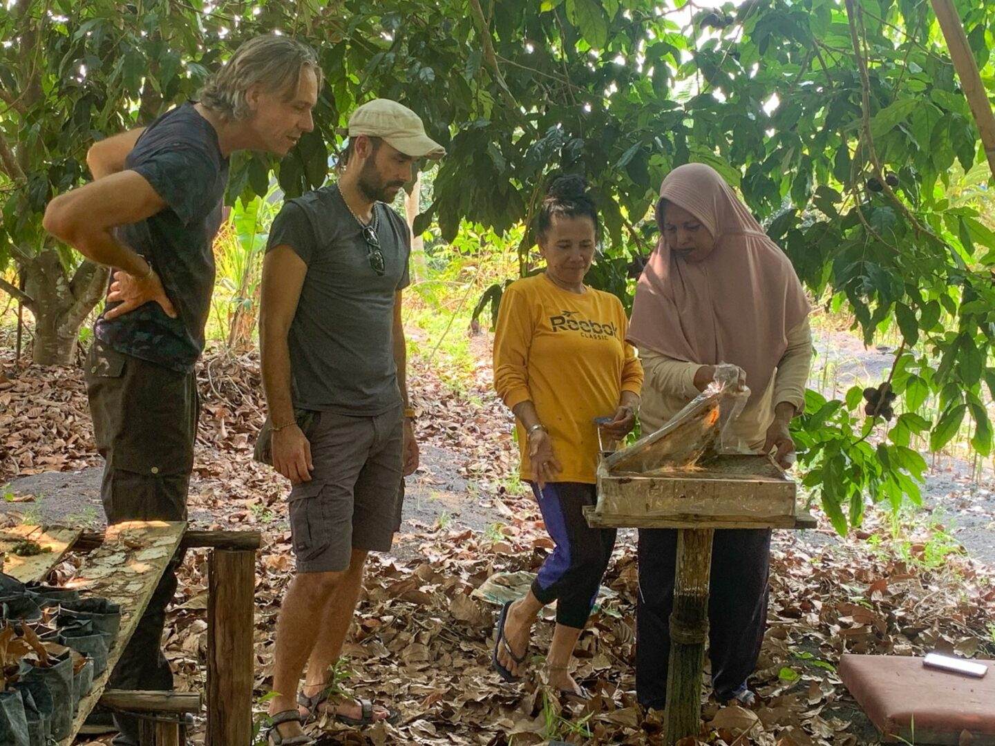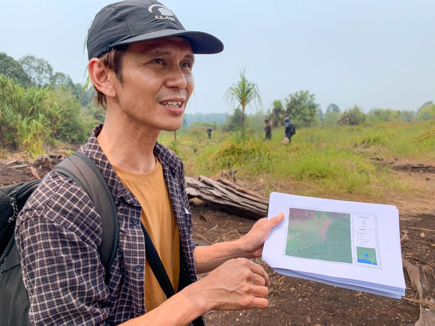 Tijdens ons projectbezoek hadden we het ‘geluk’ dat de grond niet erg drassig was, waardoor deze relatief goed begaanbaar was. Tegelijkertijd is dat ook het slechte nieuws: de kurkdroge veengrond is zorgwekkend. Door het weerfenomeen El Niño valt er momenteel nauwelijks regen. Het gevolg? Het waterpeil is te laag, waardoor de veengronden veel CO2 uitstoten. En nog erger: ze vatten gemakkelijk vlam. Ook toen wij op projectbezoek waren, zagen we in de omgeving branden oplaaien.
