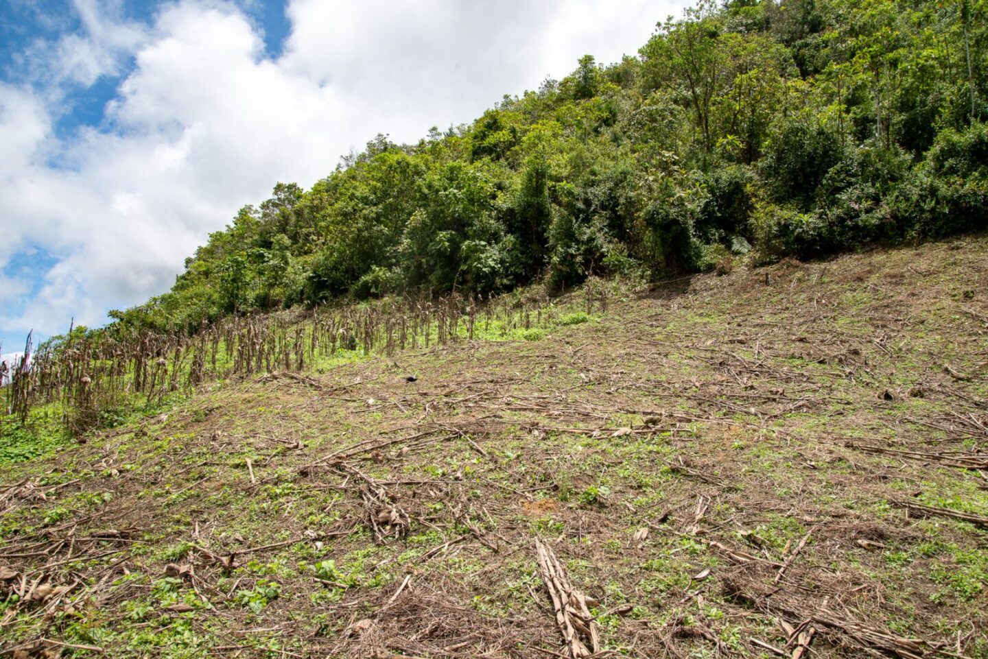 Gedegradeerde en ontboste grond die we samen met de boeren willen herstellen.