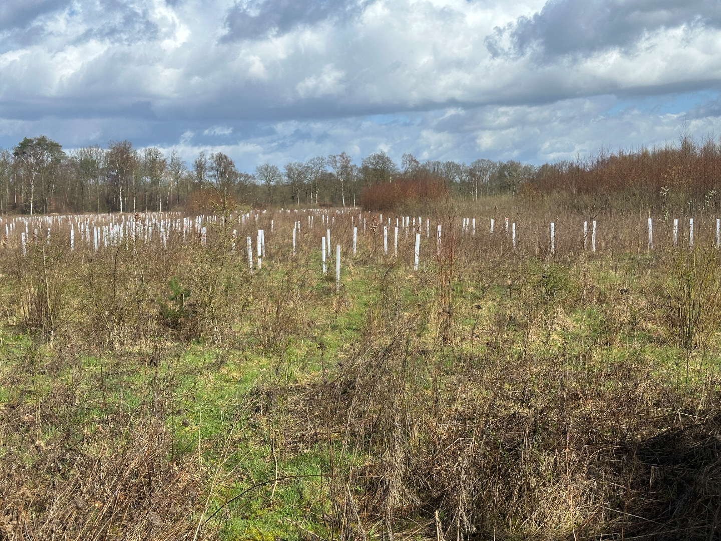 De plantlocaties zijn van tevoren ingezaaid met graan om de boompjes een goede start te geven.