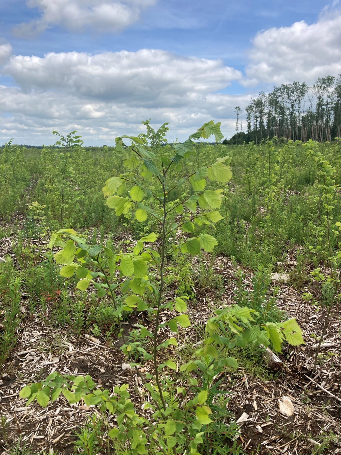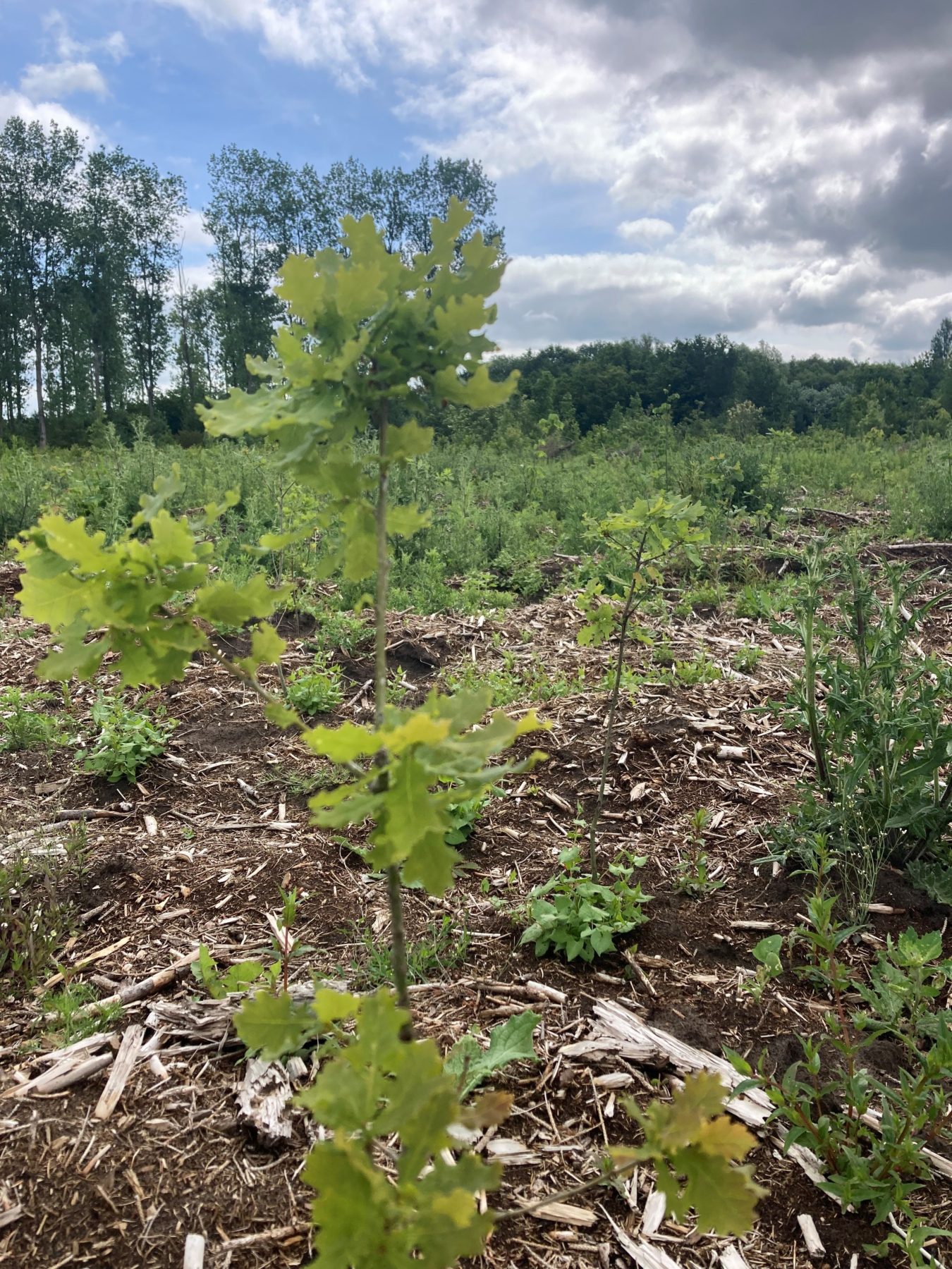 Ondanks het droge voorjaar, gaat het ontzettend goed met de jonge boompjes. Sterker nog, zo’n 95% van de bomen heeft het overleefd. Een geweldig resultaat! Ze groeien ontzettend hard: binnen twee jaar zijn sommige iepen al twee meter hoog. Overal zie je frisgroen blad en nieuwe scheuten.