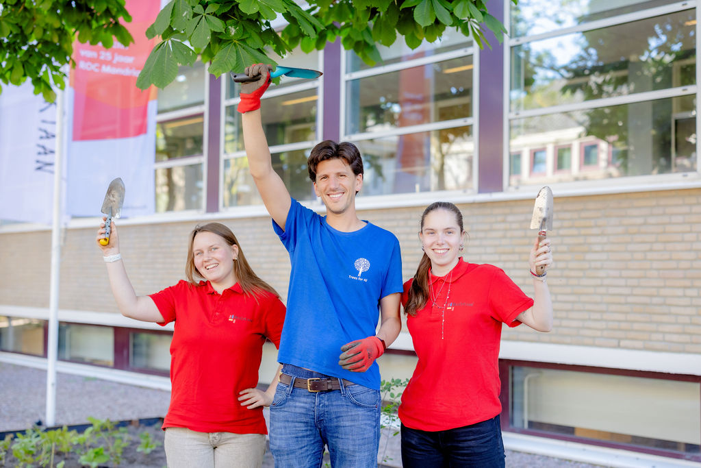 ROC Mondriaan uit Den Haag deed tijdens het schooljaar 2024-2025 mee met ons scholenprogramma Trees for Schools. Studenten van de afdeling Horeca & Facilitaire Dienstverlening kregen klimaatlessen, een ontwerpworkshop en vergroenden een brede grindstrook voor hun school. Sylvie van Bleiswijk, duurzaamheidsambassadeur bij het ROC Mondriaan is enthousiast: “Trees for Schools brengt duurzaamheid en vergroening voor onze studenten écht tot leven.”