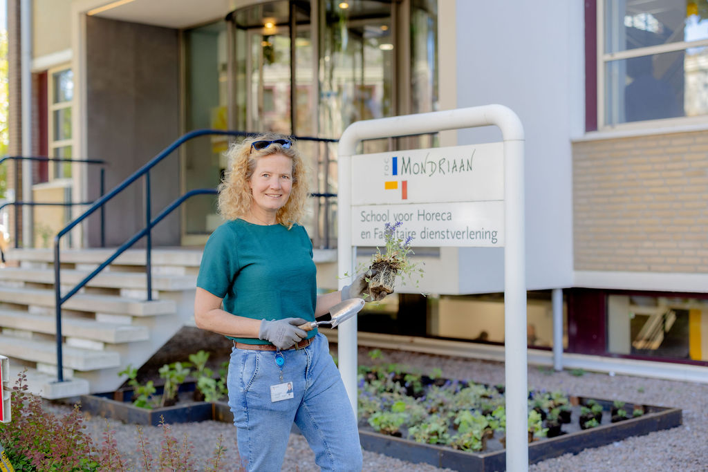 Sylvie: “We vinden het belangrijk om onze horecastudenten te laten zien wat er om ons heen groeit en ze dat te laten gebruiken tijdens de kooklessen. Afgelopen jaar hebben we extra fruitbomen en kruidentorens in het buitenlokaal geplaatst. Door onze deelname aan Trees for Schools kunnen we nu nóg meer plekken rondom de school vergroenen.”