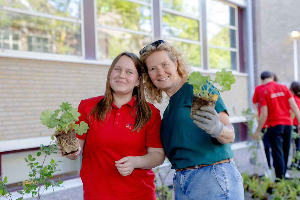 Een duurzame school in 2026: dat is de ambitie van de school voor Horeca & Facilitaire Dienstverlening van Het ROC Mondriaan in Den Haag. “Trees for Schools past helemaal bij die ambitie”, vertelt Sylvie enthousiast. “We willen graag een groene schoolomgeving creëren en de biodiversiteit rondom de school bevorderen. Want meer groen heeft een positieve invloed heeft op het welzijn van onze studenten en medewerkers. Trees for Schools helpt ons om studenten hier op een praktische manier bij te betrekken.”