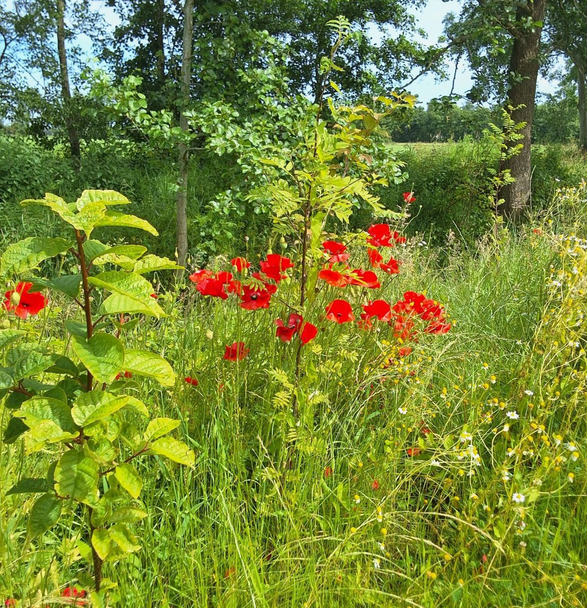 Na de aanplant rapporteren alle deelnemers aan de Friese Milieufederatie om de voortgang en groei in de gaten te houden. Ondertussen kunnen we zeggen dat ondanks het natte voorjaar de meeste aanplant goed is aangeslagen. Er is nauwelijks uitval! Hier en daar hebben bomen en struiken wat schade opgelopen door reeën, die maar al te graag aan boompjes knabbelen.