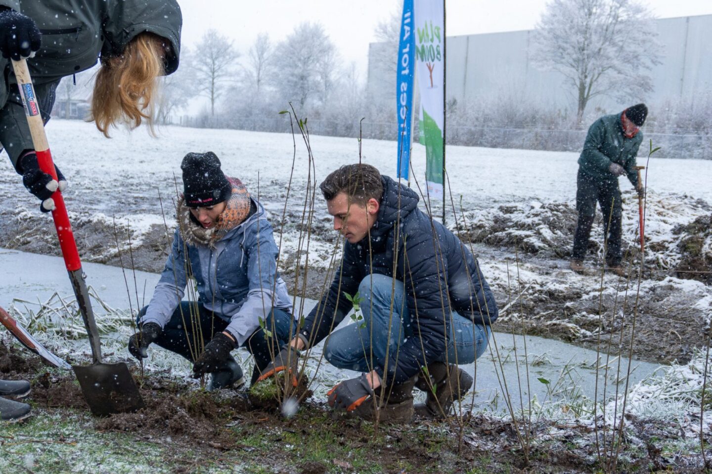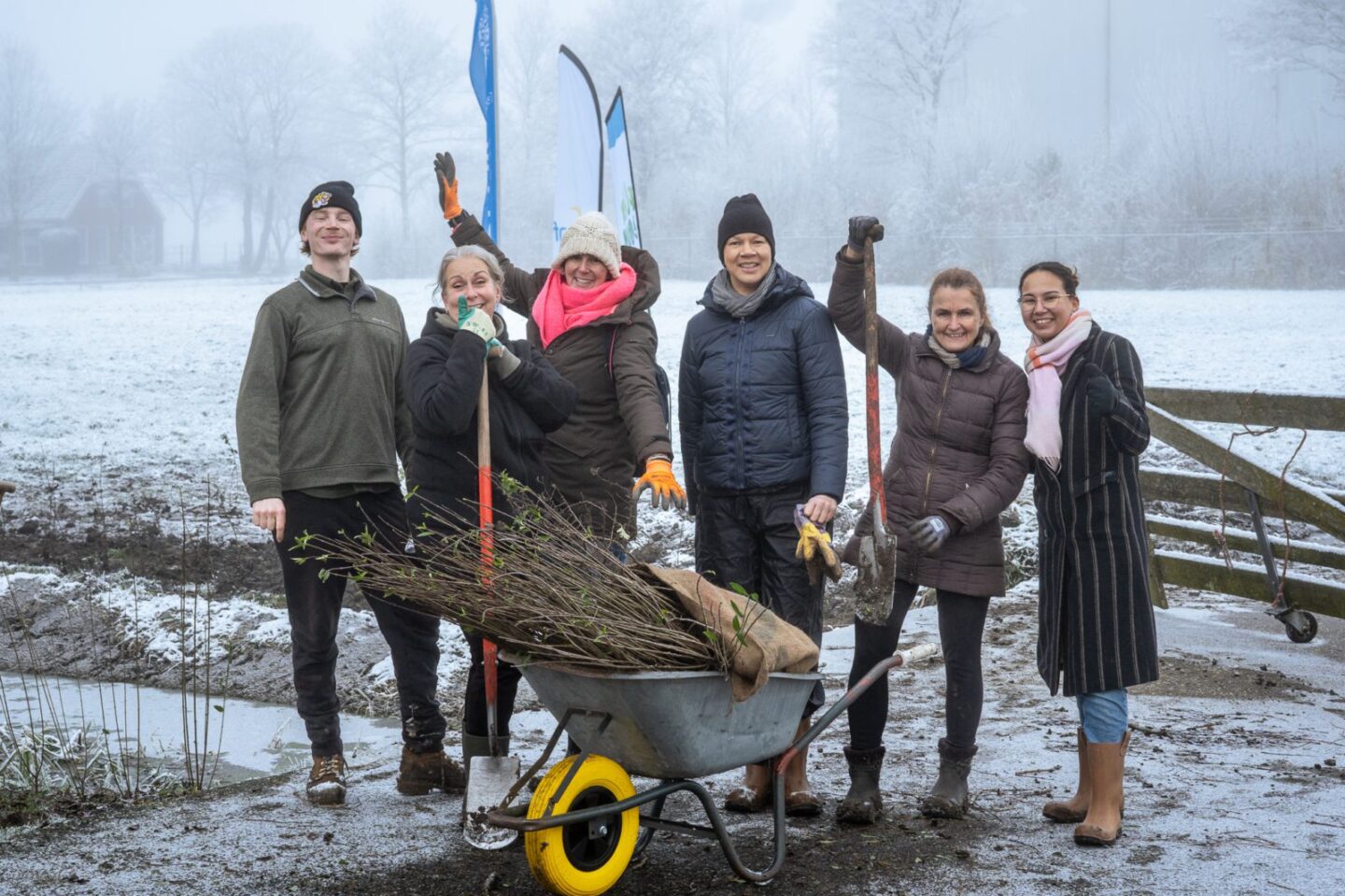 Een van de locaties waar we hebben geplant, is een perceel in Stroobos met voorheen maar weinig groen. Hier zijn 1.600 struiken geplant rondom een weiland. Daarbij kregen we hulp van een aantal van onze bedrijfspartners tijdens de jaarlijkse boomplantdagen. In de winterse kou was dat even bikkelen voor de deelnemers!