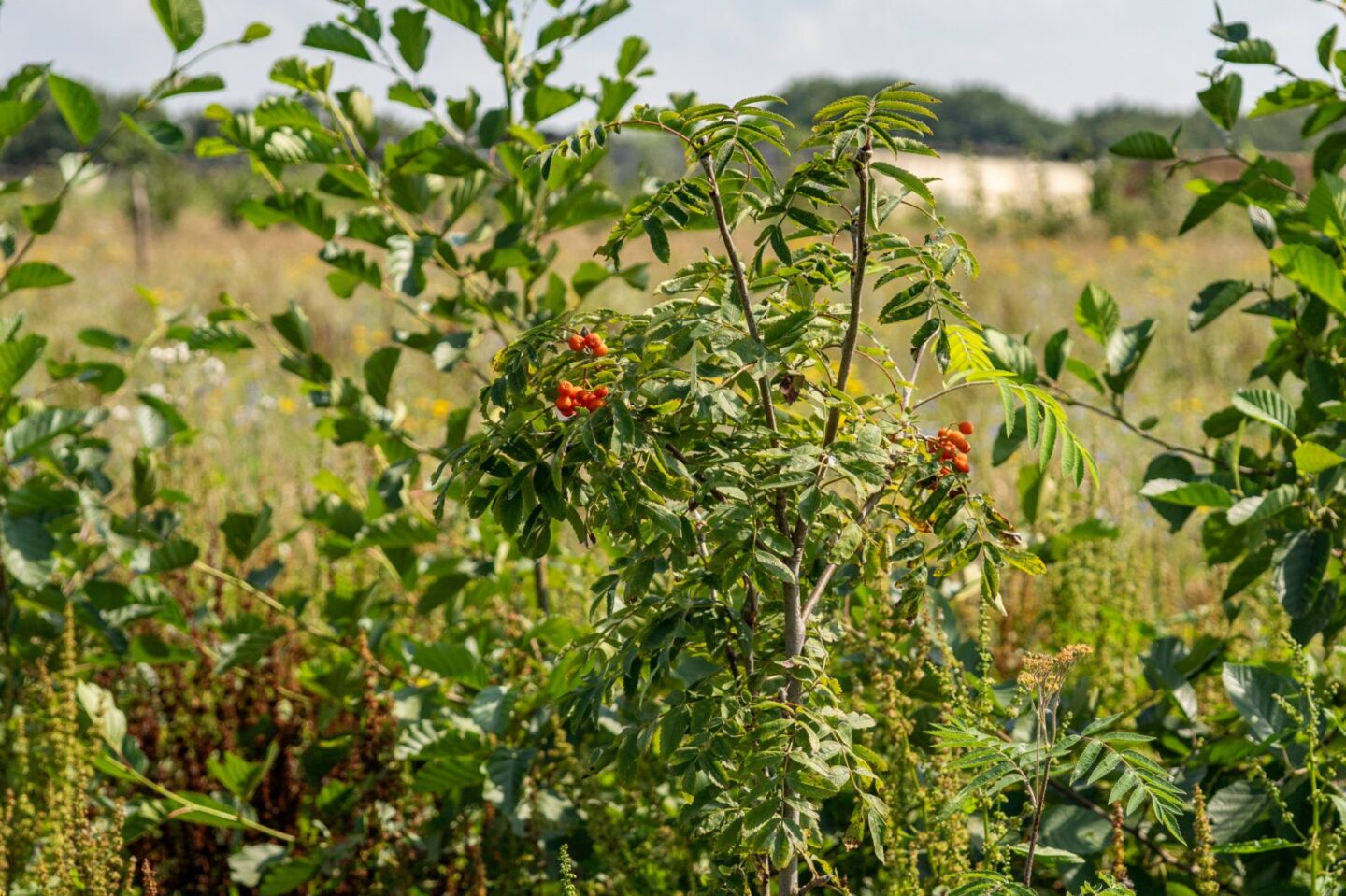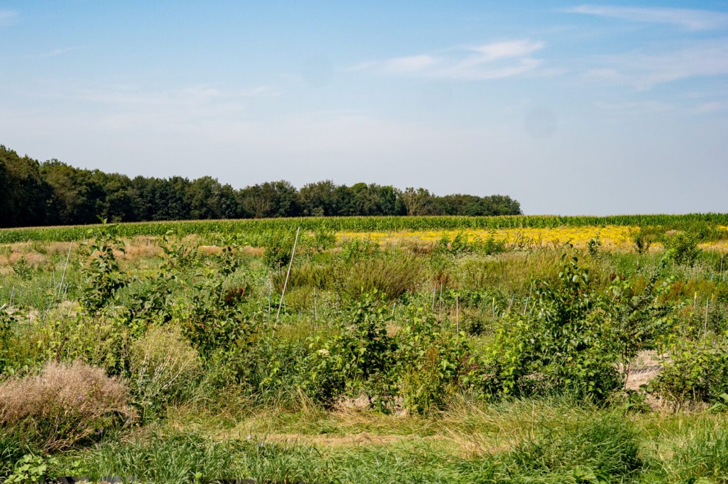 Ook verbeteren de bomen de waterhuishouding en de vruchtbaarheid van de bodem. Op deze manier ontstaan er gunstige omstandigheden voor de voedselproducerende bomen en struiken, zodat zij straks volop kunnen groeien en heerlijk voedsel opleveren! Ondanks de extreme natte winter en nat voorjaar zijn de meeste pioniersoorten goed aangeslagen en is de uitval minimaal.